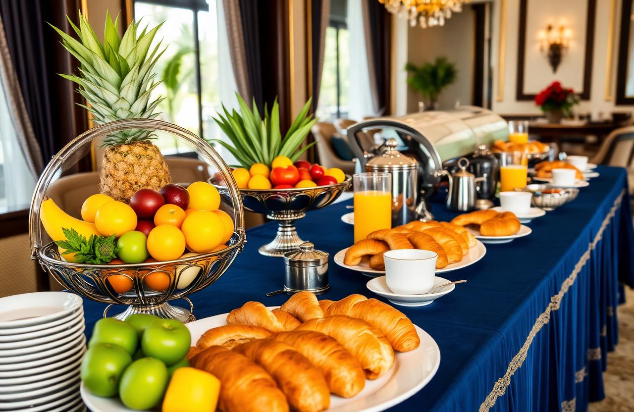 Every morning from 6:00 AM to 10:00 AM, enjoy a complimentary gourmet breakfast featuring fresh tropical fruits, pastries, eggs prepared to your liking, local specialties, and freshly brewed coffee.